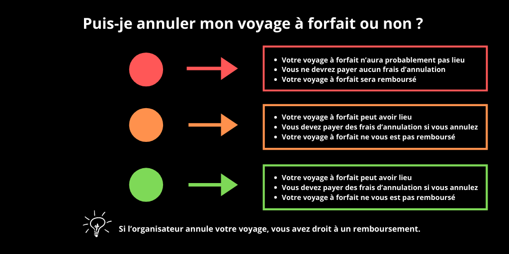 - Quelles sont les répercussions des codes couleur de ma destination sur mon voyage à forfait ?